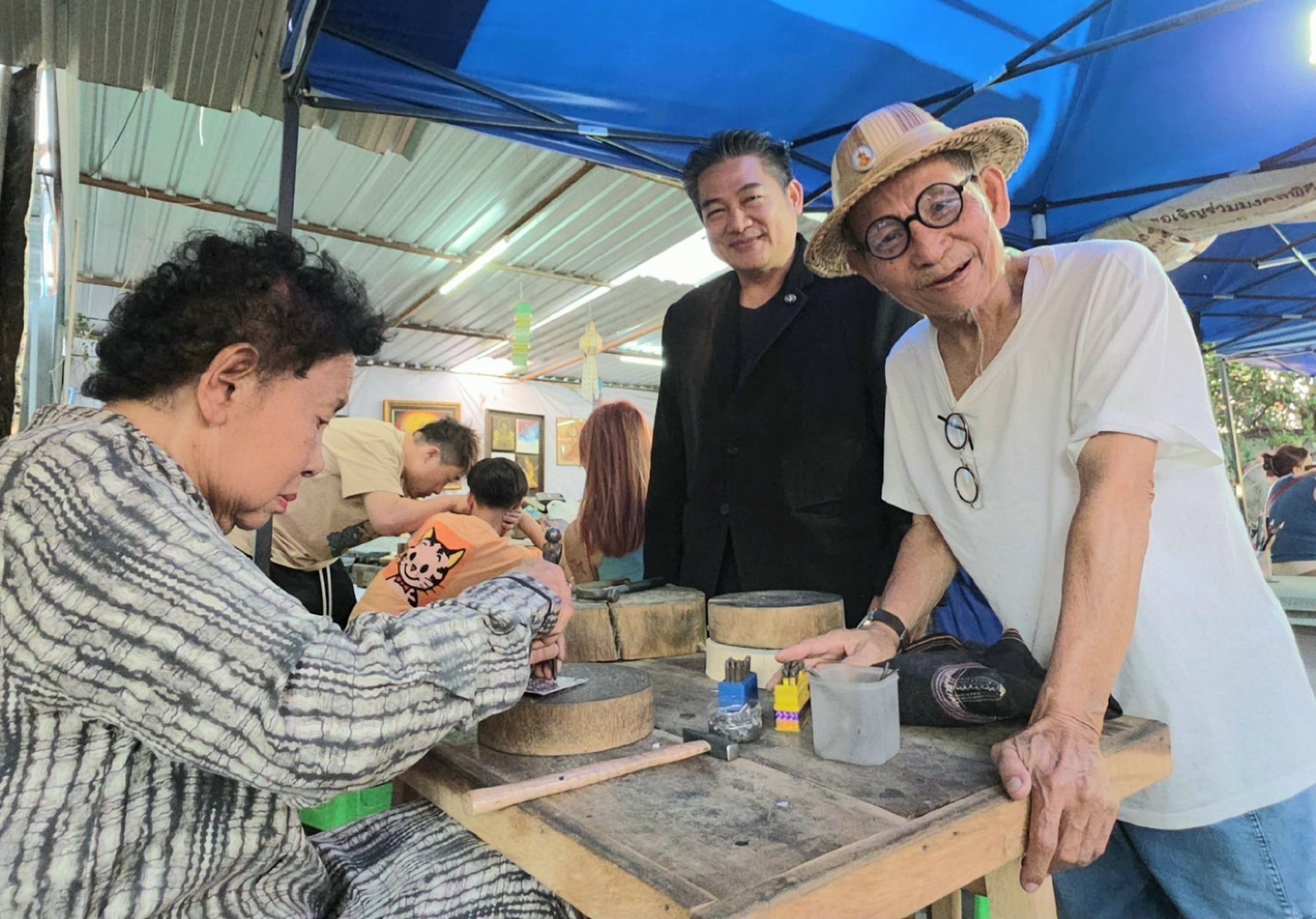 ต่อมาในบ่ายวันเดียวกัน ผู้อำนวยการกองกองทุนส่งเสริมงานวัฒนธรรม พร้อมด้วย นางรัจนา พวงประยงค์ และคณะ ได้ลงพื้นที่เพื่อเยี่ยมเยียนบ้านศิลปินแห่งชาติ นายดิเรก สิทธิการ ศิลปินแห่งชาติ สาขาทัศนศิลป์ (งานสลักดุนเครื่องเงินและโลหะ) พุทธศักราช ๒๕๖๕ ที่กรมส่งเสริมวัฒนธรรม กระทรวงวัฒนธรรม ได้เปิดให้เป็นแหล่งเรียนรู้ทางวัฒนธรรมในจังหวัดเชียงใหม่ไปเมื่อปี พ.ศ. ๒๕๖๘ ที่ผ่านมา พบว่า มีนักท่องเที่ยวทั้งชาวไทยและชาวต่างชาติ ให้ความสนใจเข้ามาร่วมทำ work shop งานสลักดุนเครื่องเงินด้วยตนเอง เพื่อนำกลับไปเป็นของที่ระลึกเป็นจำนวนมากตลอดทั้งวัน และยังซื้อกลับไปเป็นของฝากของที่ระลึก ทำให้สามารถสร้างอาชีพ และสร้างรายได้ให้กับแหล่งเรียนรู้บ้านศิลปินแห่งชาติและชุมชนโดยรอบเป็นอย่างมาก
