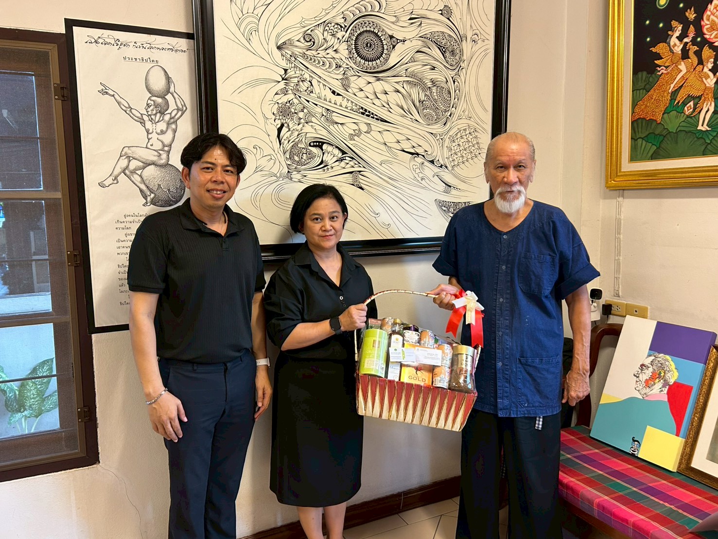 วันพุธที่ ๒๕ กุมภาพันธ์ ๒๕๖๙ เวลา ๑๔.๐๐ น. นางพรนิภา บัวพิมพ์ ผู้อำนวยการกลุ่มสวัสดิการศิลปินแห่งชาติฯ พร้อมด้วยนายภาสสิวัชร พิทยสีห์นาค นักวิชาการวัฒนธรรมชำนาญการ และนายวรินทร ทองด้วง นักวิชาการวัฒนธรรม พนักงานกองทุนส่งเสริมงานวัฒนธรรม เดินทางเข้าเยี่ยมนายช่วง มูลพินิจ ศิลปินแห่งชาติ สาขาทัศนศิลป์ (จิตรกรรม) พุทธศักราช ๒๕๕๖ ณ หอศิลป์ ช่วง มูลพินิจ เขตสะพานสูง กรุงเทพฯ พร้อมมอบกระเช้าสุขภาพในนามประธานกรรมการกองทุนส่งเสริมงานวัฒนธรรม และอธิบดีกรมส่งเสริมวัฒนธรรม