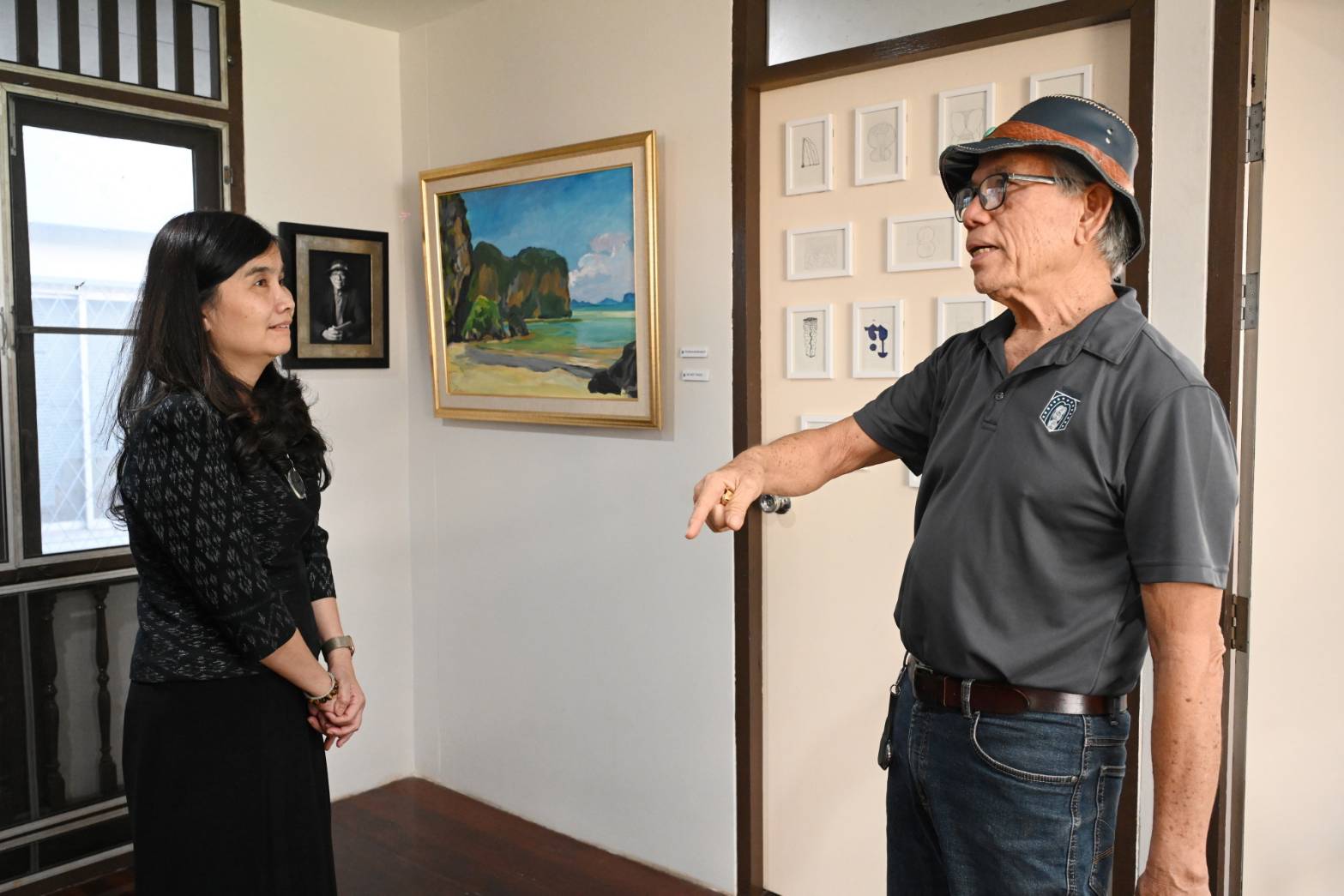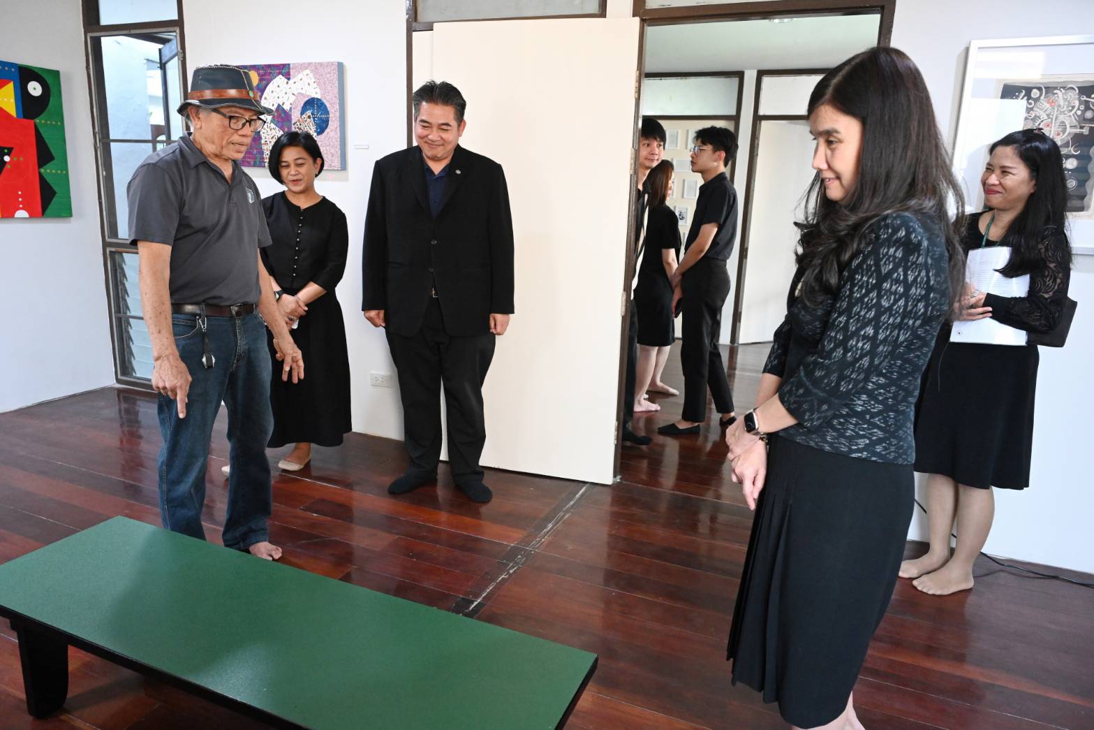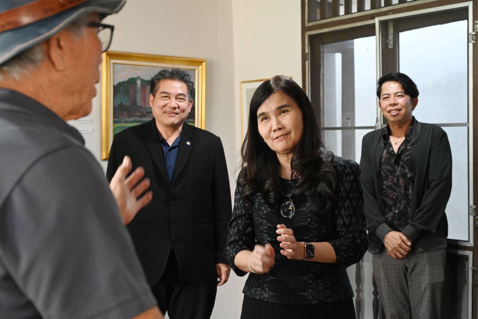 ในวาระดังกล่าว นายเผ่า สุวรรณศักดิ์ศรี ศิลปินแห่งชาติ สาขาทัศนศิลป์ (สถาปัตยกรรมไทย) พุทธศักราช ๒๕๕๓ และนายชาตรี ลดาลลิตสกุล ศิลปินแห่งชาติ สาขาทัศนศิลป์ (สถาปัตยกรรม) พุทธศักราช ๒๕๖๒ ร่วมแสดงความยินดีและเยี่ยมชมนิทรรศการด้วย