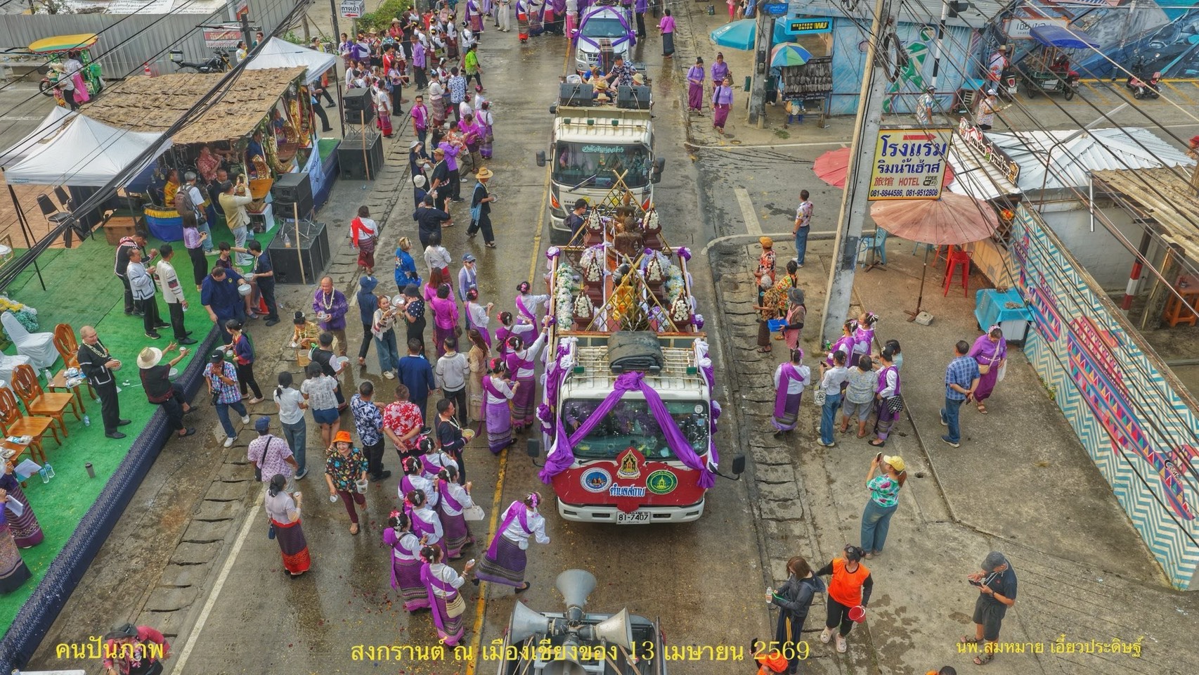 - เวลา ๐๗.๐๐ น. นายสุรเชษฐ์ พุ้ยน้อย นายอำเภอเชียงของ พร้อมด้วยนางอัญชลา พุ้ยน้อย นายกกิ่งกาชาดอำเภอเชียงของ นำหัวหน้าส่วนราชการ ประชาชน และนักท่องเที่ยว ร่วมกิจกรรมทำบุญตักบาตร เนื่องในโอกาสวันสงกรานต์ หรือป๋าเวณีปี๋ใหม่เมือง บริเวณถนนสายกลางอำเภอเชียงของ